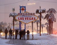 Las Vegas, Nevada (AFP) Dec 18, 2008 Las Vegas was grappling with the aftermath of a once-in-a-generation snowstorm on Thursday which coated the famous icons of Las Vegas and forced the closure of the city's airport. The city's public school system was closed because of snowfall for the first time in nearly 30 years after several inches of snow fell on the Nevada gambling haven on Wednesday, halting traffic at McCarran International Airport. By early Thursday, the airport and all the highways into Las Vegas had reopened and brilliant sunny skies reduced the white accumulation to massive puddles and constant drippings from rooftops across the city. While some areas saw as much as six inches, the official measurement at McCarran was a record-busting 3.6 inches, the most ever for December. The mountain range to the west, which received 11 inches, appeared as though covered in a deluge of sugar. "This is the most snow we've had in Las Vegas in almost 30 years," said Chris Stachelski, a meteorologist with the National Weather Service. "It's a significant historical event." The novelty drew newlywed couples to pose for pictures in front of the snow-capped Welcome to Fabulous Las Vegas sign and local media websites were buried in snapshots sent in of bowed palm-tree fronds, snowmen with dice for eyes and pets frolicking in the bizarre ground covering. This being Las Vegas, the local newspaper even quizzed local sports books operators as to the odds -- set at 10,000 to 1 by one Las Vegas bookie -- on the likelihood that snow could accumulate on the Las Vegas Strip. Wednesday's snowfall in the valley also was the most since 1979, when 7.8 inches fell in a 48-hour period, beginning Jan. 30. The record was set in January 1949, with 9.7 inches falling over two days, according to the weather service. School district officials canceled school for Thursday late Wednesday when it was unclear how much snow would accumulate. There are virtually no snow plows or salt trucks in Las Vegas, which sits in the driest desert in North America, to clear roads in time for the start of class, they said. Share This Article With Planet Earth