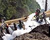 Moscow (RIA Novosti) Jul 20, 2007A toxic cloud of burning phosphorus gas released by a derailed train near Lviv (western Ukraine) is headed towards Belarus. Moving at a height of two or three kilometers from the ground, it does not pose any threat to aircraft traveling at much higher altitudes. In the meantime, the gas is being broken down by oxygen in the atmosphere, so hopefully we will soon be able to sigh with relief as if we have just seen a short horror movie. |