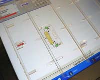 The tactiles adhere to the overlay. Alignment holes on the tactiles allow users to place them at desired locations on the overlay and thus build process-flow diagrams. Tactile and graphical interfaces are the same size because when a tactile is clicked, the design is built on the computer screen under it.