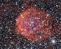 The vivid red cloud in this new image from ESO's Very Large Telescope is a region of glowing hydrogen surrounding the star cluster NGC 371. This stellar nursery lies in our neighbouring galaxy, the Small Magellanic Cloud. The object dominating this image may resemble a pool of spilled blood, but rather than being associated with death, such regions of ionised hydrogen - known as HII region ... read more