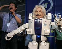 At first glance, the bulky white figure looks like a prancing astronaut -- until it turns round and its features reveal it to be a Korean scientist's concept of a 21st century Albert Einstein. Then the robot "speaks" and proves that, as Albert would himself doubtless have pointed out, matters such as gravity and resemblance are all relative. "Hi. My name is Albert Hubo. I come from South Korea and I am very happy to be in Valencia," says the creature, after having demonstrated some rather bizarre hip-hop moves.