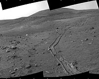 Spirit Still StuckPasadena CA (SPX) Jan 20, 2010 Sols 2137-2143 - Spirit remains embedded at the location called "Troy" on the West side of Home Plate. Extrication drives were tried on sols 2138, 2140 and 2142 (Jan. 7, 9 and 11, 2010). Each of these drives employed a new technique of steering the wheels back and forth before driving. This has shown some efficacy at sweeping material out of the wheel tracks and allowing fresh materi ... read more |