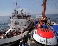 Lake Baikal, Russia (AFP) July 29, 2008 Two Russian mini-submarines on Tuesday dove to the bottom of the world's deepest lake to draw attention to its fragile environment but failed in a record-setting attempt, organisers said. Six crew members descended over 1,500 meters (4,900 feet) to the floor of Lake Baikal in Siberia in a bid to find new life-forms and encourage Russian authorities to take greater care of its pristine waters. But after an initial claim to have made the deepest freshwater dive in history, expedition members admitted they had miscalculated. "There was no record.... We'll try again," expedition leader Artur Chilingarov, a Russian parliamentarian and a celebrated Arctic explorer, said after the dive. "We want to study and observe Baikal, to preserve it," said Chilingarov, who led a submarine team last year that planted a Russian flag at the bottom of the North Pole. That dive aimed to stake a claim to the Arctic's rich energy reserves in a mission that was dismissed as a stunt by the United States. Like the Arctic dive, Tuesday's mission was extensively covered live on Russia's Vesti-24 television channel and hyped up further by Russian politicians. Expedition organisers said the mission signalled a revival of scientific discovery in Russia. The expedition also had a strong political dimension. Chilingarov said he had "full support" from Prime Minister Vladimir Putin and a flag for the ruling United Russia party could be seen flying from the expedition's barge. But crew members said the government needed to do more to protect the UNESCO-protected site. "Many people are concerned about the lake's fate, and not enough is being done," said Vyacheslav Nagovitsyn, head of the local Buryatiya region and one of the crew members. The scientists said they planned to collect samples at different depths and document the effects of global warming on the lake in the weeks to come, as well as study economic development in the region. Lake Baikal is the deepest lake in the world, although not the largest in terms of surface area. Environmental groups warn that increased pollution is threatening the lake, which has more than 800 unique wildlife species. On Tuesday, expedition organisers and a representative of Guinness World Records in Russia initially claimed that the Mir-1 mini-submarine had broken the record. But Chilingarov later admitted that the first of the submarines, Mir-1, went down only 1,580 metres (5,184 feet) and not 1,680 metres as initially calculated. The second vessel, Mir-2, went down further to 1,592 metres -- still not enough to set a record for the deepest submarine dive in fresh water. The current record of 1,637 metres was set in Lake Baikal in the 1990s. The Mir-1 and Mir-2 mini-submarines, which are each 7.8 metres (26 feet) long, have filmed the wreck of the Titanic and carried out work on the Kursk submarine, which sank in 2000 in the Barents Sea with 118 sailors on board. They were designed to descend to a depth of 6,000 metres. Related Links Water News - Science, Technology and Politics