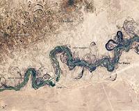 Syr Darya River Floodplain, Kazakhstan, Central AsiaGreenbelt MD (SPX) Nov 04, 2010 Central Asia's most important cotton-growing region is concentrated in the floodplain of the Syr Darya. The river was one of the farthest points reached by the ancient Greek leader Alexander of Macedon (or Alexander the Great). The floodplain is shown here as a tangle of twisting meanders and loops (image center). The darkest areas are brushy vegetation along the present course (filled wit ... read more |