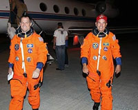 Cape Canaveral FL (SPX) Aug 21, 2009 Space shuttle Discovery's seven astronauts flew to NASA's Kennedy Space Center in Florida for final prelaunch preparations Wednesday evening. In the crew quarters of Kennedy's Operations and Checkout Building they will review flight data and check out their launch-and-entry suits today. Countdown to the launch of the STS-128 mission to the International Space Station begins at 11 p.m. EDT Friday. Liftoff of Discovery is set for 1:36 a.m. Aug. 25. Space shuttle Discovery will carry the Leonardo supply module to the International Space Station during STS-128, along with a new crew member for the station, Nicole Stott. Commanded by veteran astronaut Rick "C.J." Sturckow, the STS-128 mission crew will deliver refrigerator-sized racks full of equipment, including the COLBERT treadmill, an exercise device named after comedian Stephen Colbert. Stott will take the place of Tim Kopra, who moved into the station during STS-127. Pilot Kevin Ford and Mission Specialists Patrick Forrester, Jose Hernandez, John "Danny" Olivas and Sweden's Christer Fuglesang round out the crew.
