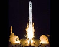 Long Beach CA (SPX) Sep 25, 2008 Early this morning, the Sea Launch Company successfully delivered the Galaxy 19 satellite to orbit from its ocean-based platform on the Equator. This is the international company's fifth successful launch from sea in 2008. A Zenit-3SL rocket lifted off at 2:28am PDT (9:28 GMT) from the Odyssey Launch Platform, positioned at 154 degrees West Longitude. Just over an hour later, the Block DM-SL upper stage inserted the 4,690 kg (10,340 lb) Galaxy 19 satellite into geosynchronous transfer orbit. Operators at the Hartebeesthoek ground station in South Africa acquired the spacecraft's first signals from orbit shortly after spacecraft separation. All systems performed nominally throughout the mission. "Congratulations to Intelsat and to Space Systems/Loral for this morning's successful mission," said Kjell Karlsen, president and general manager of Sea Launch. "We're proud of our role in Intelsat's continued success as the leading provider of fixed satellite services worldwide. This is our 8th successful mission for Intelsat and we look forward to many more. Also, I want to thank everyone at SS/L for their consistently professional work leading up to the successful completion of this mission. "We're very satisfied with today's mission results. It is again my privilege to acknowledge and thank the Sea Launch partners, contractors and the entire team for another launch superbly executed." Built by Space Systems/Loral (SS/L), the 1300-series hybrid spacecraft carries a total of 52 physical transponders. The Galaxy 19 satellite will provide Intelsat customers valuable 50-state coverage, as well the Caribbean, Canada and Mexico. It will be located at 97 degrees West Longitude. "Once operational, Galaxy 19 will host the largest international video programming platform in North America, providing distribution of news and entertainment to our customers who serve the ethnically diverse audience of this region. Likewise, Galaxy 19 will offer our government and network customers seamless data communications for years to come," said David McGlade, Intelsat CEO. "This was our last launch of 2008, completely refreshing the capacity of Intelsat's North American Galaxy Fleet."