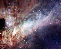 New Portrait Of Omega Nebula's Glistening WatercoloursParis, France (SPX) Jul 09, 2009 The Omega Nebula, sometimes called the Swan Nebula, is a dazzling stellar nursery located about 5500 light-years away towards the constellation of Sagittarius (the Archer). An active star-forming region of gas and dust about 15 light-years across, the nebula has recently spawned a cluster of massive, hot stars. The intense light and strong winds from these hulking infants have carved ... read more |
