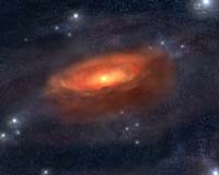 File image of a massive star being formed.) See a video simulation the collapse of a 100 solar mass protostellar core to a massive star. On the left is the entire molecular cloud about 1.3 light years on a side. On the right is a portion of that cloud magnified 40 times to focus on the formation of a single massive star. Without a few small stars to heat up the gas on the right, dozens of small stars would form instead of one massive star. View full-size video by Mark Krumholz/Princeton (29MB)