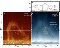 Coronal Mass Ejections (CMEs) are violent solar explosions that can propel up to 10 billion tons of the Sun's atmosphere - at a million miles an hour - out through the corona and into space. These fast, powerful ejections can take as little as 18 hours to reach Earth and give rise to geomagnetic storms, which can disrupt radio transmissions, induce large currents in power lines and oil pipelines ... read more