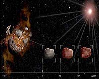 Paris, France (SPX) Apr 24, 2009 A new study published in Nature reveals that asteroid surfaces age and redden much faster than previously thought - in less than a million years, the blink of an eye for an asteroid. This study has finally confirmed that the solar wind is the most likely cause of very rapid space weathering in asteroids. This fundamental result will help astronomers relate the appearance of an asteroid to its actual history and identify any after effects of a catastrophic impact with another asteroid. "Asteroids seem to get a 'sun tan' very quickly," says lead author Pierre Vernazza. "But not, as for people, from an overdose of the Sun's ultraviolet radiation, but from the effects of its powerful wind." It has long been known that asteroid surfaces alter in appearance with time - the observed asteroids are much redder than the interior of meteorites found on Earth - but the actual processes of this "space weathering" and the timescales involved were controversial. Thanks to observations of different families of asteroids using ESO's New Technology Telescope at La Silla and the Very Large Telescope at Paranal, as well as telescopes in Spain and Hawaii, Vernazza's team have now solved the puzzle. When two asteroids collide, they create a family of fragments with "fresh" surfaces. The astronomers found that these newly exposed surfaces are quickly altered and change colour in less than a million years - a very short time compared to the age of the Solar System. "The charged, fast moving particles in the solar wind damage the asteroid's surface at an amazing rate [3]", says Vernazza. Unlike human skin, which is damaged and aged by repeated overexposure to sunlight, it is, perhaps rather surprisingly, the first moments of exposure (on the timescale considered) - the first million years - that causes most of the aging in asteroids. By studying different families of asteroids, the team has also shown that an asteroid's surface composition is an important factor in how red its surface can become. After the first million years, the surface "tans" much more slowly. At that stage, the colour depends more on composition than on age. Moreover, the observations reveal that collisions cannot be the main mechanism behind the high proportion of "fresh" surfaces seen among near-Earth asteroids. Instead, these "fresh-looking" surfaces may be the results of planetary encounters, where the tug of a planet has "shaken" the asteroid, exposing unaltered material. Thanks to these results, astronomers will now be able to understand better how the surface of an asteroid - which often is the only thing we can observe - reflects its history. Share This Article With Planet Earth