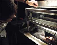 MIT Professor Tom Peacock in lab where his group performed experiments on a new approach to unsteady flow separation. Photo / Donna Coveney.