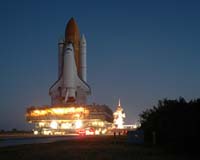 Cape Canaveral FL (SPX) May 02, 2008Space shuttle Discovery is set to complete the final leg of its preflight journey May 3, making the 3.4-mile trek from Kennedy Space Center's Vehicle Assembly Building to Launch Pad 39A. Perched atop the mobile launcher platform, the shuttle assembly will roll out to the oceanside launch complex atop the massive crawler-transporter at less than one mile an hour. |