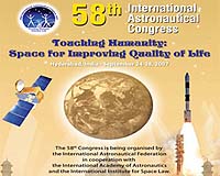 Hyderabad, India (SPX) Sep 05, 2007 The 58th International Astronautical Congress (IAC 2007) takes place in Hyderabad, India from 24 -29 September 2007. This annual congress, one of the major space events of the year, brings together some 2000 international specialists, industry representatives and world leaders in the field. It provides a crossroad uniting the world's space agencies, astronautics institutes, aerospace scientific associations and firms involved in space activities. The congress will be officially inaugurated on the morning of Monday 24 September at 09:45 local time by the Indian Prime Minister , Dr Manmohan Singh. More than 1300 authors are presenting papers, while symposia composed of 138 parallel technical sessions deal with such subjects as space transportation, communication satellites, Earth observation, human spaceflight, exploration of outer space and the planets, and space law. An exhibition with more than 90 booths features products and activities of space agencies and major industrial companies. In addition to the regular technical presentations, major Plenary Events and Highlight Lectures on various topics will be presented with the participation of top representatives from the European, American, Russian, Japanese, Indian, Chinese, and Canadian space agencies and leading industries. These include: - Round table of Heads of Space agencies - Earth-threatening Asteroids - 50th Anniversary of the Space era: Sputnik 1 and the International Geophysical Year - Role of government procurements in developing space markets - Recent results on global exploration strategy and future lunar and interplanetary missions - Earth observation systems in Asia: International cooperation within Asian countries - New space industry actors in the global market place - Space technology for poverty alleviation - The International Space Station: an historic technical achievement and international cooperative success - Human health and performance in space as human exploration begins - Space satellite-based telemedicine networks - Living and working aboard the International Space Station. This year, as a novelty, IAF and UN-OOSA plan to organise a round table with participation of Heads of leading space agencies and other relevant national/regional/international institutions from both space-faring nations and non-space-faring countries. A workshop held from 21-23 September in Hyderabad will promote a direct dialogue with participants on how space technologies and policies can contribute to sustainable development programmes in developing countries, with a focus on food security. Related Links IAF The latest information about the Commercial Satellite Industry