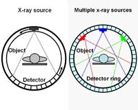 By borrowing techniques used in telecommunications technology, computed tomography (CT) scanners may eventually see data collection speeds increase by hundreds of times, leading to better images, faster imaging procedures, and potentially lower x-ray exposures. A University of North Carolina team has pioneered a method that collects images from many sources at once, instead of the current serial method of data collection.