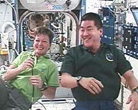 Houston TX (SPX) Jan 30, 2008 The Expedition 16 crew aboard the International Space Station wrapped up preparations Tuesday for a 6.5-hour spacewalk scheduled to begin early Wednesday. After completing a daily exercise regimen, Commander Peggy Whitson and Flight Engineer Dan Tani configured cameras for use during their spacewalk. They later participated in a conference with specialists in Mission Control, Houston, for a final review of spacewalk procedures. To complete the day's preparations, Whitson and Tani are "camping out" overnight in the Quest airlock. This procedure protects against decompression sickness as they go to the even lower pressure of spacesuits on Wednesday. Most of Wednesday's spacewalk will focus on replacement of a motor, called the Bearing Motor Roll Ring Module, which drives the starboard solar wings as they tilt along their axis to follow the sun for optimal power generation as the station orbits the Earth. The spacewalk is slated to begin at 5:20 a.m. EST. Live coverage on NASA TV kicks off at 4 a.m. Also on Tuesday, Flight Engineer Yuri Malenchenko completed a repress of the station's oxygen from the supply aboard the docked Progress 27 cargo craft. That Progress vehicle will undock from the station Feb. 4 to make way for the arrival of Progress 28 and its cargo of food, supplies and oxygen on Feb 7.
