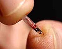 These radio frequency identification tags (RFIDs) are already used by Wal-Mart and other businesses to speed up their shipping systems by sending out small signals that can be scanned more easily than bar codes.