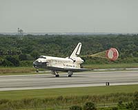 Cape Canaveral (AFP) June 20, 2007 The crew of the US shuttle Atlantis woke up to prepare their ultra high-speed re-entry into Earth's atmosphere, uncertain if the weather would allow Thursday's scheduled landing. "Good morning, Atlantis," the control center in Houston, Texas, greeted the seven-strong crew, after waking them with music by the Texas country music singer John Arthur Martinez. The astronauts were then to start preparing to break out of orbit at some 300 kilometers (186 miles) altitude. NASA warned that bad weather could delay the return to Earth, however. The shuttle needs good visibility to land, without power and no second chance to approach the runway. If the weather is clear enough, Houston is due to give the green light to leave orbit at 1650 GMT, prompting the shuttle to plunge back to Earth and land at 1754 GMT at the Kennedy Space Center in Cape Canaveral, Florida. The shuttle plummets to Earth 20 times faster than a commercial airliner and hits the ground at 344 to 364 kilometers (214 to 226 miles) per hour, with a drag chute to stop it. If it misses the first scheduled landing opportunity, Atlantis will get another chance at 1930 GMT, then four other chances on Friday. It needs to land by Saturday before the hydrogen batteries providing its electric power run out.