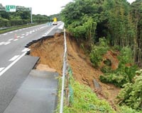 A picture shows a collapsed section of the Tomei Expressway in Makinohara, some 200km west of Tokyo, after a strong earthquake on August 11, 2009. Photo courtesy of AFP.