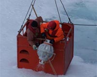 Exchange of moorings in dense ice cover This marine region is the only deepwater link between the North Atlantic and the central Arctic Ocean and hence a region in which systematic changes are reflected in a particularly sensitive way. To observe and evaluate these changes, 17 moorings were distributed on the floor of the ocean around the area. They measure temperature, salinity and currents up to the surface. "We are happy and content that we were able to recover and exchange the equipment, considering the extreme ice conditions", says Dr Agnieszka Beszczynska-Moller, oceanographer at the Alfred Wegener Institute. The temperature of the Atlantic water has again slightly decreased compared to the elevated temperatures of the year 2006. This demonstrates the annual variability. All in all, the researchers have observed that the temperature in the Fram Strait has risen about 0,1 degreesC each year since 1997.