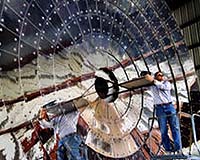 Albuquerque NM (SPX) Dec 10, 2007 Using concentrated solar energy to reverse combustion, a research team from Sandia National Laboratories is building a prototype device intended to chemically "reenergize" carbon dioxide into carbon monoxide using concentrated solar power. The carbon monoxide could then be used to make hydrogen or serve as a building block to synthesize a liquid combustible fuel, such as methanol or even gasoline, diesel and jet fuel. The prototype device, called the Counter Rotating Ring Receiver Reactor Recuperator (CR5, for short), will break a carbon-oxygen bond in the carbon dioxide to form carbon monoxide and oxygen in two distinct steps. It is a major piece of an approach to converting carbon dioxide into fuel from sunlight. The Sandia research team calls this approach "Sunshine to Petrol" (S2P). "Liquid Solar Fuel" is the end product - the methanol, gasoline, or other liquid fuel made from water and the carbon monoxide produced using solar energy. Sandia is a National Nuclear Security Administration (NNSA) laboratory. CR5 inventor Rich Diver says the original idea for the device was to break down water into hydrogen and oxygen. The hydrogen could then fuel a potential hydrogen economy. The Sandia researchers came up with the idea to use the CR5 to break down carbon dioxide, just as it would water. Over the past year they have shown proof of concept and are completing a prototype device that will use concentrated solar energy to reenergize carbon dioxide or water, the products of combustion. This will form carbon monoxide, hydrogen, and oxygen, which ultimately could be used to synthesize liquid fuels in an integrated S2P system. Coresearchers on the project are Jim E. Miller and Nathan Siegel. Project champion is Ellen B. Stechel, manager of Sandia's Fuels and Energy Transitions Department. Stechel says that researchers have known for a long time that theoretically it might be possible to recycle carbon dioxide, but many thought it could not be made practical, either technically or economically. "Hence, it has not been pursued with much vigor," she says. "Not only did we think it was possible, the team has developed a prototype that they fully anticipate will successfully break down carbon dioxide in a clever and viable two-step process." Stechel notes that one driver for the invention is the need to reduce greenhouse gases. "This invention, though probably a good 15 to 20 years away from being on the market, holds a real promise of being able to reduce carbon dioxide emissions while preserving options to keep using fuels we know and love," she says. "Recycling carbon dioxide into fuels provides an attractive alternative to burying it." Providing funding for Sunshine to Petrol is Sandia's internal Laboratory Directed Research and Development (LDRD) program. The research has also attracted interest and some funding from DoD/DARPA (Defense Advanced Research Projects Agency). "What's exciting about this invention is that it will result in fossil fuels being used at least twice, meaning less carbon dioxide being put into the atmosphere and a reduction of the rate that fossil fuels are pulled out of the ground," Diver says. As an example, he says, coal would be burned at a clean coal power plant. The carbon dioxide from the burning of the coal would be captured and reduced to carbon monoxide in the CR5. The carbon monoxide would then be the starting point of making gasoline, jet fuel, methanol, or almost any type of liquid fuel. The prospect of a liquid fuel is significant because it fits in with the current gasoline and oil infrastructure. After the synthesized fuel is made from the carbon monoxide, it could be transported through a pipeline or put in a truck and hauled to a gas station, just like gasoline refined from petroleum is now. Plus it would work in ordinary gasoline and diesel engine vehicles. Miller says that while the first step would be to capture the carbon dioxide from sources where it is concentrated - e.g., power plants, smokestacks, and breweries - the ultimate goal would be to snatch it out of the air. A S2P system that includes atmospheric carbon dioxide capture could produce carbon-neutral liquid fuels. "Our overall objective with this prototype is to demonstrate the practicality of the CR5 concept and to determine how test results from small-scale testing can be expanded to work in real devices," Miller says. "The design is conservative compared to what might eventually be developed." Diver says the prototype should be completed by early next year. He hand-built the precision device in a shop at Sandia's National Solar Thermal Test Facility and is now waiting on a few parts to finalize it. Initial tests will break down water into hydrogen and oxygen. That will be followed by tests that similarly break down carbon dioxide to carbon monoxide and oxygen. Besides having a nearly completed prototype, the research team has already proven that the chemistry works repeatedly through multiple cycles without losing performance and on a short enough cycle time for a practical device. "We just now have to do it all in one continuous working device," Siegel says. Sandia is a multiprogram laboratory operated by Sandia Corporation, a Lockheed Martin company, for the U.S. Department of Energy's National Nuclear Security Administration. With main facilities in Albuquerque, N.M., and Livermore, Calif., Sandia has major R and D responsibilities in national security, energy and environmental technologies, and economic competitiveness. Related Links Sandia National Laboratories Powering The World in the 21st Century at Energy-Daily.com