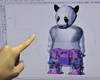 A technician points at a panda model on a monitor at the National Taiwan University of Science and Technology (NTUST) on September 16, 2009. The world's first panda robot is taking shape at a cutting-edge lab in Taiwan where an ambitious group of scientists hope to add new dimensions to the island's reputation as a high-tech power. Photo courtesy AFP.
