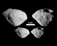 Close-up images of asteroid (2867) Steins, obtained with the OSIRIS cameras on Rosetta, have provided extensive new measurements of the physical properties of this main-belt asteroid. Steins is revealed to be a loosely-bound 'rubble pile' whose diamond shape has been honed by the YORP effect. This is the first time this effect has been seen in a main-belt asteroid. The results are reported by H. Uwe Keller and colleagues in the 8 January issue of Science magazine. ... read more