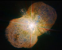 Being brighter than one million Suns, Eta Carinae is the most luminous star known in the Galaxy. It is the closest example of a luminous blue variable, the last phase in the life of a very massive star before it explodes in a fiery supernova.
