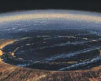 Artist's depiction of the Chicxulub impact crater. The total number today of objects a kilometer in diameter or larger, a size that could cause a similar global catastrophe upon Earth impact, is now estimated to range between 900 and 1,230. Credit: NASA