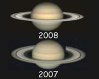 In the months ahead, Saturn's rings will become thinner and thinner until, on Sept. 4, 2009, they vanish. When this happened to Galileo in 1612, he briefly abandoned his study of the planet. Big mistake: ring plane crossings are good times to discover new Saturnian moons and faint outer rings.