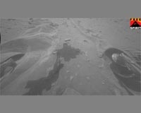 Spirit is preparing to attempt extrication from her embedded location at "Troy" on the west side of "Home Plate." The project was successful in reformatting Spirit's on-board flash memory file system on Sol 2083 (Nov. 11, 2009). The rover is now again using the non-volatile flash file system for telemetry storage. On Sol 2078 (Nov. 6, 2009), Spirit straightened her wheels in preparat ... read more