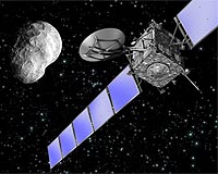 ESA's Rosetta spacecraft will fly by asteroid (2867) Steins on 5 September 2008 at 20:58 CEST, ground received time (= spacecraft time CEST + 20 minutes), with a closest approach distance of 800 km. Steins is Rosetta's first nominal scientific target. The spacecraft encountered the asteroid in the course of its first incursion into the main asteroid belt located between the orbits of Mars and Jupiter, while on its way to Comet 67P/Churyumov-Gerasimenko. The study of asteroids is extremely important because they represent a sample of Solar System material at different stages of evolution - key to understanding the origin of our own planet and of our planetary neighbourhood. Credits: ESA, image by C.Carreau