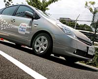 Journalists drive a prototype of the plug-in hybrid vehicle of Toyota Motor which enable to charge battery from power supply for families on the test course in Tokyo, 25 July 2007. The Japan's auto giant acquired authorization from the government to begin a proof examination of the plug-in hybrid vehicle on public roads in Japan. Photo courtesy AFP.