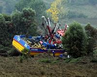 Chilean trawler stranded far from the oceanColiumo, Chile (AFP) March 28, 2010 One month after Chile's massive earthquake, Captain Cesar Pena is still amazed by the force of the tsunami wave that followed the quake and swept his trawler into a field far from the ocean. His brightly painted ship, the "Aguila Real II" (Royal Eagle II), is wedged between two trees some five kilometers (three miles) inland from Coliumo, a coastal town in southern Chile. Pena was ready ... read more |