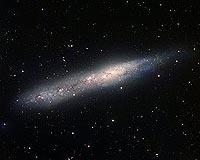 Paris, France (SPX) Apr 08, 2009 To celebrate the 100 Hours of Astronomy, ESO is sharing two stunning images of unusual galaxies, both belonging to the Sculptor group of galaxies. The images, obtained at two of ESO's observatories at La Silla and Paranal in Chile, illustrate the beauty of astronomy. As part of the International Year of Astronomy 2009 Cornerstone project, 100 Hours of Astronomy, the ambitious "Around the World in 80 Telescopes" event is a unique live webcast over 24 hours, following night and day around the globe to some of the most advanced observatories on and off the planet. To provide a long-lasting memory of this amazing world tour, observatories worldwide are revealing wonderful, and previously unseen, astronomical images. For its part, ESO is releasing outstanding pictures of two galaxies, observed with telescopes at the La Silla and Paranal observatories. The first of these depicts the irregular galaxy NGC 55, a member of the prominent Sculptor group of galaxies in the southern constellation of Sculptor. The galaxy is about 70 000 light-years across, that is, a little bit smaller than our own Milky Way. NGC 55 actually resembles more our galactic neighbour, the Large Magellanic Cloud (LMC), although the LMC is seen face-on, whilst NGC 55 is edge-on. By studying about 20 planetary nebulae in this image, a team of astronomers found that NGC 55 is located about 7.5 million light-years away. They also found that the galaxy might be forming a bound pair with the gorgeous spiral galaxy NGC 300 . Planetary nebulae are the final blooming of Sun-like stars before their retirement as white dwarfs. This striking image of NGC 55, obtained with the Wide Field Imager on the 2.2-metre MPG/ESO telescope at La Silla, is dusted with a flurry of reddish nebulae, created by young, hot massive stars. Some of the more extended ones are not unlike those seen in the LMC, such as the Tarantula Nebula. The quality of the image is clearly demonstrated by the remarkable number of background galaxies seen, as well as the huge numbers of individual stars that can be counted within NGC 55. The second image shows another galaxy belonging to the Sculptor group. This is NGC 7793, which has a chaotic spiral structure, unlike the class of grand-design spiral galaxies to which our Milky Way belongs. The image shows how difficult it is to identify any particular spiral arm in these chaotic structures, although it is possible to guess at a general rotating pattern. NGC 7793 is located slightly further away than NGC 55, about 12.5 million light-years from us, and is about half the size of NGC 55. NGC 7793 was observed with one of the workhorses of the ESO Paranal Observatory, the FORS instrument, attached to the Very Large Telescope. Share This Article With Planet Earth