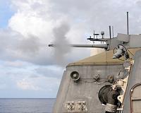The Navy installed the second gun mission module (GMM) aboard USS Independence (LCS 2) July 28 in Norfolk, Va. The GMM is an integral part of Littoral Combat Ship (LCS) Surface Warfare (SUW) Mission Package used for counter-piracy, maritime interdiction and security missions. GMM consists of two MK 46 turret mounted, axis-stabilized, 30mm chain gun systems that can fire up to 200 rounds per minu ... read more