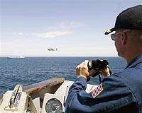 Mogadishu (AFP) Oct 1, 2008 The US Navy on Wednesday kept up the pressure on Somali pirates holding a Ukrainian cargo shipment of tanks and other weapons, as the European Union agreed an anti-piracy operation in the region. Warships from the United States and other navies have blockaded the MV Faina in a port off Somalia's Indian Ocean coast, where the pirates who captured it are demanding a 20-million-dollar payment for the cargo. The US Defense Department said it expected a Russian warship to arrive within days, but said it had laid the emphasis on ensuring a "peaceful resolution." A Russian naval spokesman also played down talk of confrontation, denying in a statement Wednesday evening that the vessel had been sent to fight the pirates, who are holding Russia seaman among the crew of the MV Faina. "Such declarations are of a provocative character, they can prejudice the talks talks aimed at freeing the crew of the cargo ship," said Russian navy spokesman Igor Dygalo. The patrol boat Intrepid despatched from the Baltic fleet to the Indian Ocean was there to protect Russian shipping there, he said. A meeting of EU defence ministers in Deauville, northern France, meanwhile, agreed to launch an anti-piracy security operation off the coast of Somalia, French Defence Minister Herve Morin said Wednesday. "There is very broad European willingness," said Morin. "Many countries want to take part. Ten have clearly given their accord to take part in such a mission," he added. They included Belgium, Cyprus, France, Germany, Lithuania, the Netherlands, Spain, Sweden and possibly Britain, he said. Somali President Abdullahi Yusuf Ahmed urged Somalis and the international community to combat rising piracy off the lawless nation's waters, which has seen 60 ships seized this year alone. "They (pirates) are imposing an embargo on the Somali people and the international community because they are blocking movement between the Mediterranean and the Indian Ocean, which affects not only Somalia but the whole world," Yusuf told reporters in Mogadishu. "I call on the Somali people to fight against the pirates. I also call on the international community to act quickly on what is happening in Somali waters as well as on shore," he added. The pirates, who seized the Belize-flagged freighter with its 21-man crew and 33 Soviet-era T-72 battle tanks last Thursday, say they are under 24-hour surveillance from US ships and helicopters. "We are prepared for any eventuality," warned pirate spokesman Sugule Ali, by satellite telephone from the ship. The Bahrain-based US Navy Fifth Fleet said several ships and helicopters were in the area to support the destroyer USS Howard as it observed its target, now docked at the Somali port village of Hobyo. Abdikadir Musa Yusuf, deputy seaports minister for the Somali breakaway region of Puntland, said, "There are negotiations going on between the pirates and the foreign ships." The Pentagon said it wanted a peaceful resolution and US warships were there to make sure pirates do not make off with its military cargo. "But at this point, what we are most concerned about is seeing a peaceful solution to this problem," Pentagon spokesman Geoff Morrell said, adding that US Navy was not negotiating with the pirates. He said the main US concern was "that this cargo does not end up in the hands of anyone who would use it in a way that would be destabilising to the region." There are 21 Ukrainians, Russians and Latvians in the crew. The ship's captain died of an illness on board, according to Russian media. "We are sticking to the demand for 20 million dollars. This is not ransom, but a fine for unlawfully transporting weapons on Somali waters," Ali said. The pirates and the US Navy say the arms were headed for Sudan. The Ukrainian owners of the freighter and the Kenyan government said the tanks were destined for Kenya. Piracy is rife and well organised in the region where Somalia's northeastern tip juts into the Indian Ocean, preying on a key maritime route leading to the Suez Canal through which an estimated 30 percent of the world's oil transits. burs-jmm/bkb/jj Related Links 21st Century Pirates