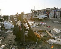 The early morning scene of a bomb blast at the Mraidi market in the eastern Sadr City district of Baghdad, on June 25, 2009. The explosion took place in the crowded market, killing at least 69 people and wounding 150 others. The blast comes prior to the withdrawal of US troops from urban areas. Photo courtesy AFP.