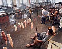 Seattle WA (SPX) Mar 05, 2009 More than a year after developing a unique neurological disorder, the affected pork processing plant workers have improved, but all have some continuing symptoms and many have ongoing mild pain, according to a study that was presented at the American Academy of Neurology's 61st Annual Meeting. The workers developed symptoms such as walking difficulties, weakness, numbness and tingling in the arms and legs, pain and fatigue. All had worked in or near the area where compressed air was used to extract pig brains. All plants have discontinued the practice. For the study, researchers reexamined 24 of the workers affected at plants in Minnesota and Indiana. Of those, 17 were treated with immune therapy such as steroids. Sixteen people improved with treatment; 12 had marked improvement, two had moderate improvement and two had mild improvement. Six of the people who had no treatment also improved after they were no longer exposed to the pig brain mist. Neurologists have identified the illness as a new disorder that is a sensory predominant polyradiculoneuropathy. The patients all have a unique antibody not seen before. The disease affects the nerves, and can usually be identified by standard tests (nerve conduction studies and EMG), although in four mild cases specialized tests were needed to detect the abnormalities. The disease seems to improve with treatment and removal of exposure to pig brain. The disorder likely has an autoimmune basis, with workers exposed to the pig brains developing an autoimmune response that caused nerve damage. The researchers hope that further studies on this disease will aid understanding of other autoimmune disorders. "There are other autoimmune disorders where the trigger is not known, so this case with a known trigger could provide us with an opportunity to understand how an antigen can trigger the body's immune system to produce disease," said study author P. James B. Dyck, MD, of the Mayo Clinic in Rochester, MN, and a Fellow of the American Academy of Neurology. Additional details on the patients' testing and outcomes will be presented at the AAN Annual Meeting. Share This Article With Planet Earth