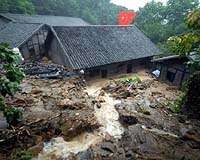 Chinese houses cover with mountain torrents during heavy rains in Chongqing, southwestern China's Guangdong province, 17 July 2007. At least 32 people died as thunderstorms of unprecedented intensity rocked southwestern China, smashing rainfall records and paralysing transportation as more than 400 people have died and at least another 105 are missing so far in rainy-season flooding across the country that began several weeks ago. Photo courtesy AFP.