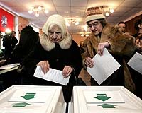 People people cast their ballots in Russia's parliamentary elections at a Moscow polling station, 02 December 2007. The election followed a campaign marred by accusations that the Kremlin rigged the contest with controversial new election laws and media bias to ensure victory for Putin's ruling United Russia party. Photo courtesy AFP.