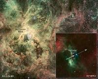A heavy runaway star is rushing away from a nearby stellar nursery at more than 250,000 miles an hour, a speed that will get you to the Moon and back in two hours. The runaway is the most extreme case of a very massive star that has been kicked out of its home by a group of even heftier siblings. The homeless star is on the outskirts of the 30 Doradus nebula, a raucous stellar breeding gro ... read more